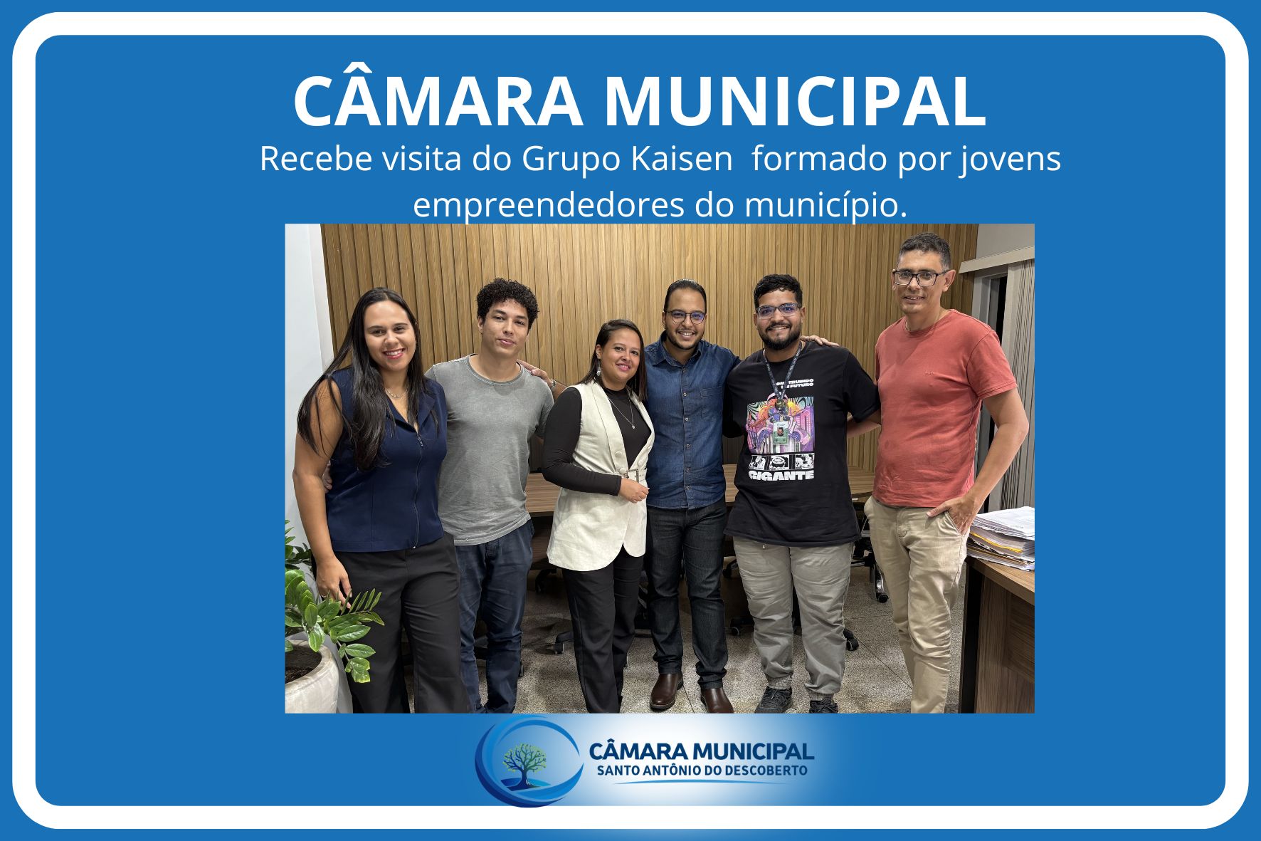 Representando o Poder Legislativo, o Presidente José Filho recebeu a equipe formada por Seonara Fernandes da Silva, Hellen Carolina Rabelo da Silva, Josué Gabriel da Silva Alves, Johnathan Pires Rezende e Leonardo Borges Teixeira. Com talento, criatividade e espírito empreendedor, os jovens levaram o nome do município ao topo de uma das maiores iniciativas de incentivo à juventude do Estado, mostrando que investir em ideias e acreditar no próprio potencial pode, sim, transformar realidades.